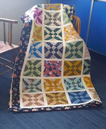 In 2022, QVCA was looking for a home for a quilting frame that had been donated to the Centre. The Melville & District Quilters were happy to provide a home for this quilting frame and as a thank you gave the QVCA this vibrant, hand-made quilt to help with future fundraising. A fine example of Art supporting the Arts.